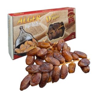 Фініки преміум на гілці сушені Alger (500 г) — це натуральні алжирські фініки сорту Деглет-Нур, які цінуються за збереження на натуральній гілочці, що дозволяє плодам залишатися соковитими та м'якими довше. Продукт висушений природним шляхом без додавання цукрового сиропу, ароматизаторів чи консервантів.