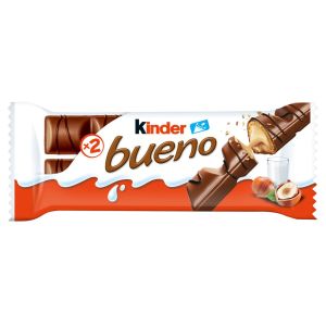Kinder Bueno – це хрусткі вафлі з молочно-горіховою начинкою, покриті молочним шоколадом.