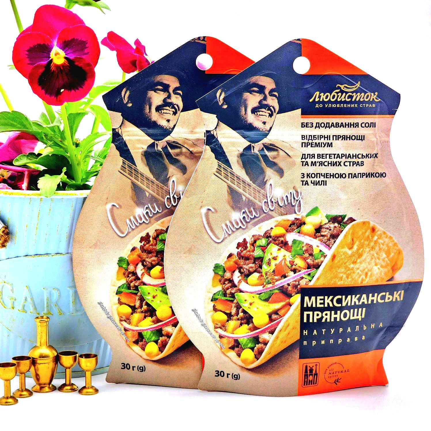 Приправа «МЕКСИКАНСЬКІ ПРЯНОЩІ» - це оригінальна ароматна композиція з виразними нотками копченої паприки, гострого чилі, пряного кумину та інших відбірних прянощів преміумкласу. Надасть багатого смаку та духмяності тако, буріто, фахітас, чилі кон карне, іншим мексиканським м’ясним, рибним та вегетаріанським стравам, начинкам і соусам. Використовуйте для натирання м’яса, риби, овочів перед смаженням чи запіканням.
