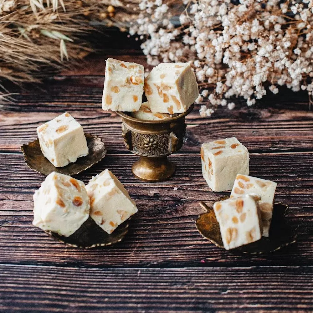 Це смачне поєднання ніжної молочної основи та хрусткого арахісу. Цей десерт має приємну кремову текстуру та насичений смак, який підкорить вас з першого шматочка. Арахіс додає легкої хрусткості, а м'яка нуга створює відчуття солодкої гармонії. Ця нуга стане чудовим доповненням до чаю або кави, а також відмінним варіантом для перекусу або частування гостей.