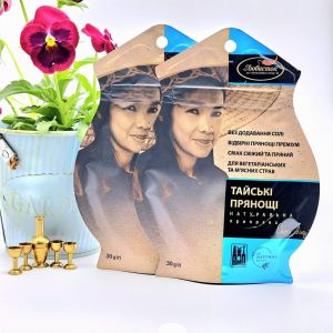 Приправа «ТАЙСЬКІ ПРЯНОЩІ» – це оригінальна ароматна композиція з виразними цитрусово-імбирними нотками крачаю і галангалу, пекучого чилі, освіжаючого лемонграсу та інших відбірних прянощів преміумкласу. Надасть екзотичного аромату та характерного м’якого кисло-солодкого присмаку тайських страв із рису, овочів, морепродуктів, м’яса курки та качки.