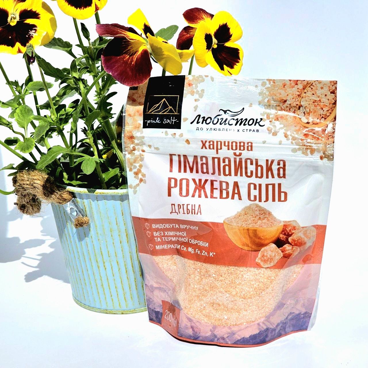 Гімалайська рожева сіль – це справжній гурманський продукт, який по-новому розкриє смак ваших улюблених страв. Її головні характеристики: • Видобута вручну • Містить понад 84 мінералів, серед яких переважають Mg, Na, Ca, Cu, Zn, Fe, J, P • Без жодних домішок • Не проходить хімічної та термічної обробки Саме завдяки вмісту такої кількості мінералів гімалайська сіль має характерний рожевий колір. Її тонкий аромат та м’який солодкувато-солоний смак по-особливому розкриваються під час змелювання кристалів. Найкраще вона пасує до стейків, картоплі фрі, пасти, омлетів, соусів, салатів, а також до страв із птиці, риби, морепродуктів. Купуйте в інтернет-магазині «Любисток» гімалайську рожеву сіль у зручних дой-пак пакетах за доступними цінами.