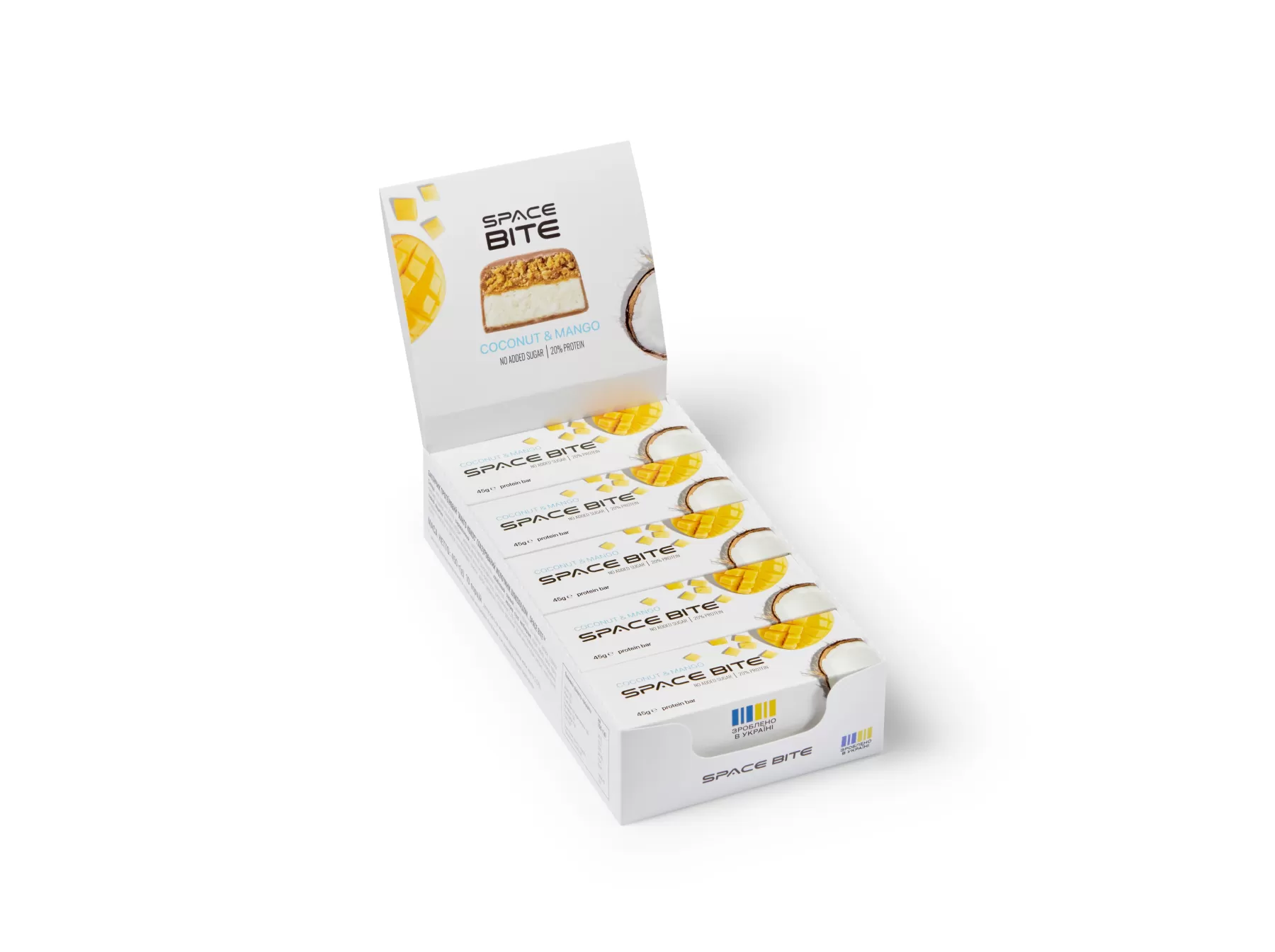Протеїновий батончик Space Bite "Манго-Кокос" — це найбільш поживний варіант у цій лінійці, орієнтований на відновлення м'язів та тривале відчуття ситості. Смак тропічної насолоди справжнього стиглого манго та ніжного кокосу, які в поєднанні з молочним шоколадом створюють ідеальну гармонію смаків.