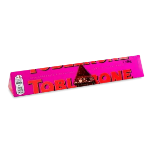 Toblerone Шоколад молочний з родзинками і нугою з меду та мигдалю — це ще більш насичена версія класичного швейцарського шоколаду, де до ніжного молочного шоколаду та медово-мигдальної нуги додано щедрі порції соковитих родзинок.