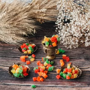 Це натуральний продукт, який поєднує в собі соковитість фруктів і приємну солодкість. Виготовлені зі свіжих фруктів і ягід, ці шматочки зберігають корисні властивості та яскравий смак. Цукати чудово підходять для перекусів, прикрашання десертів або як інгредієнт для випічки та салатів. Завдяки своїй природній солодкості, цукати є чудовою альтернативою солодощам, дозволяючи насолоджуватися смаком фруктів без зайвих калорій.