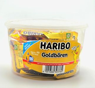 Haribo Goldbären (або "Золоті ведмедики") – це відомі желейні цукерки у формі маленьких ведмежат від німецького бренду Haribo. Вони мають м'яку, жувальну текстуру і пропонують різноманіття фруктових смаків, таких як ананас, лимон, апельсин, малина і яблуко. Ці желейки вже стали культовими і користуються популярністю в усьому світі як смачний і веселий перекус, який ідеально підходить як для дітей, так і для дорослих.