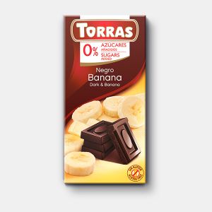 Чорний шоколад Torras з кусочками банана 75 г без цукру.