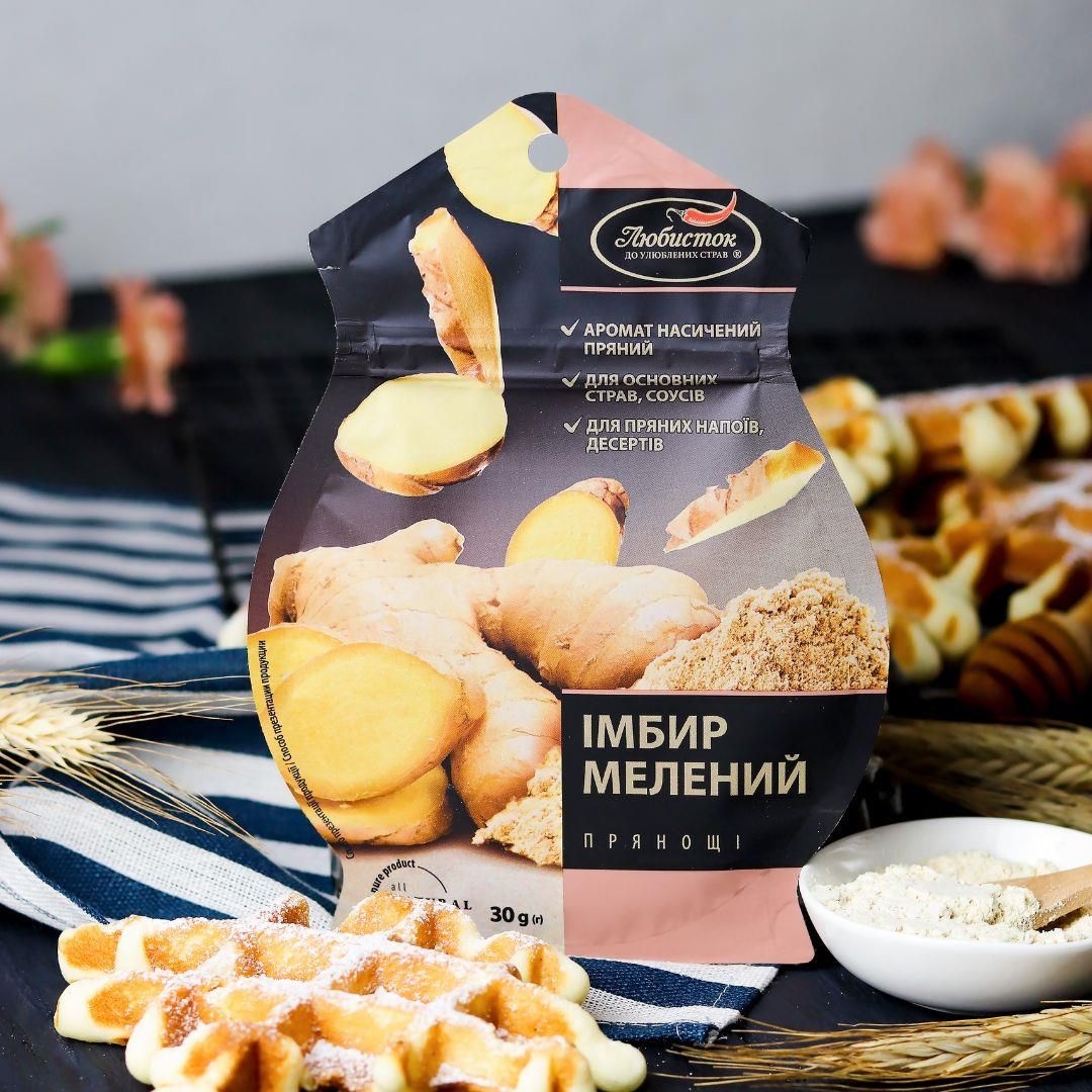 Пряний, злегка пекучий аромат імбиру пікантно відтінить смак м’ясних та рибних страв, овочевих рагу, супів, кисло-солодких соусів. Разом з іншими прянощами імбир чудово ароматизує печиво, пряники, напої. Поєднуйте його з гвоздикою, духмяним перцем, кардамоном, корицею, мускатним горіхом, перцем чилі.