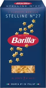 Макарони BARILLA Stelline №27 — це маленькі зірочки, які стануть чудовим доповненням до супів, салатів і дитячого харчування. Виготовлені з високоякісної пшениці твердих сортів, ці макарони відрізняються ніжною текстурою та швидким приготуванням. Час варіння становить приблизно 6-7 хвилин, що робить їх ідеальними для швидких страв. Stelline надають вашій їжі веселий вигляд і легкий смак, що робить їх улюбленими серед дітей та дорослих. Вони також чудово поєднуються з овочевими, м'ясними та рибними супами, додаючи їм вишуканості та оригінальності.