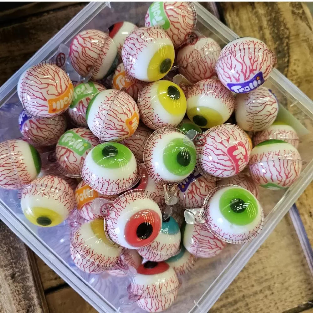 Оригінальні желейні цукерки у формі веселих очей, які обов'язково сподобаються дітям і дорослим. В упаковці міститься 60 штук, що робить їх ідеальним варіантом для свят, вечірок або просто для смакування.